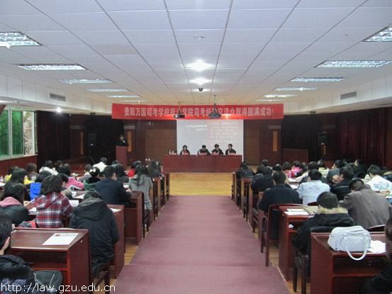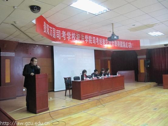 大会首先由五位主讲人就各自在司法考试准备过程中的心得与同学们进行交流。乐斌旺同学从目标、心态、执行、临场这四个方面总体介绍了怎样复习司法考试;雷欣欣同学提出了循环记忆法和复述法以及就如何准备卷一向同学们做了详细的讲解;李正春同学从复习时间规划、复习资料的选择以及报班的经验等方面谈论了他个人的体会;杨光武同学的观点侧重于对复习状态的调节、对复习场所的选择以及对重点的把握;黄进同学强调答题的技巧和方法,包括答题时间的控制和对模板的掌握。五位主讲人的精彩发言赢得了同学们的热烈掌声。同学们就如何调整好上课与复习的关系、复习程序法和实体法的先后顺序等问题向五位主讲人请教,主讲人都做了详细的解答。最后,贵阳万国司考培训学校的校长任师荣向最高分的李正春同学颁发了司考奖金,并向其他四位通过司考的同学颁发了奖品。